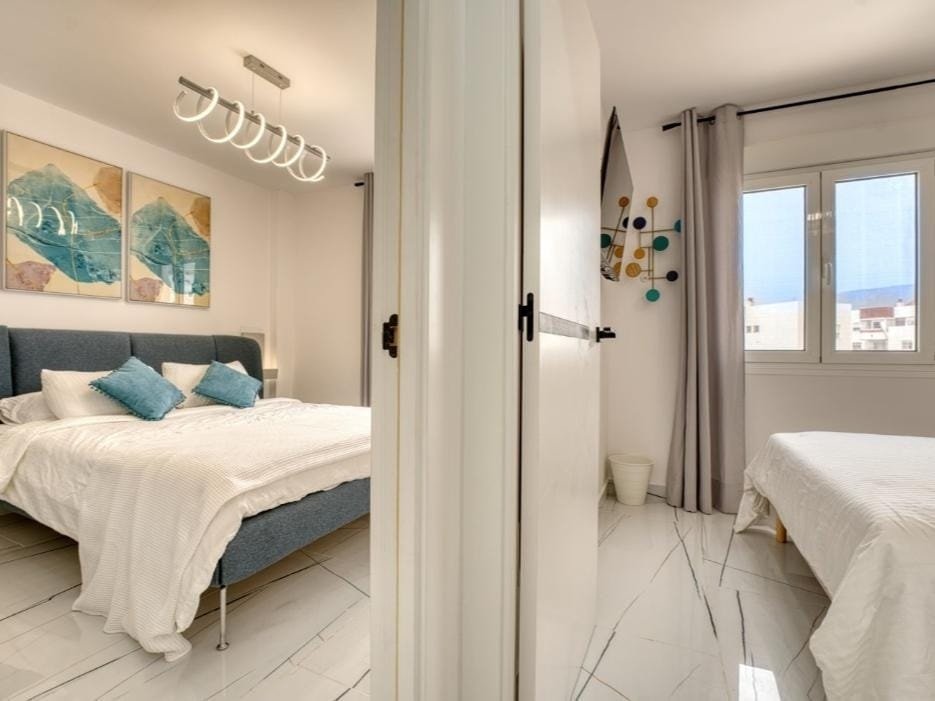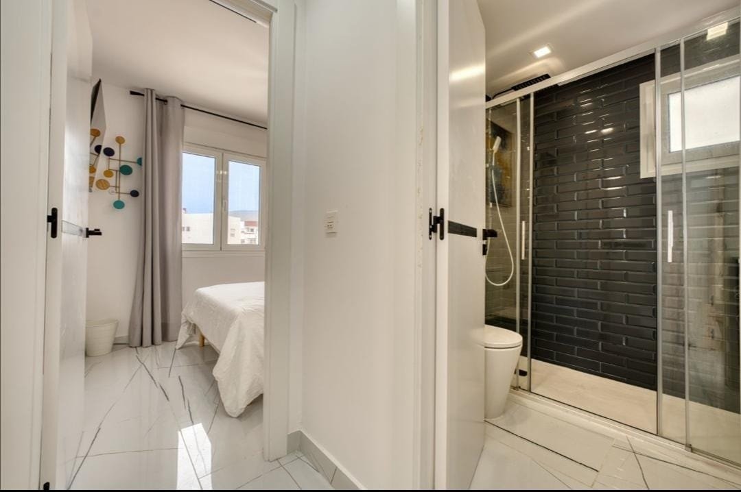 Apartamento totalmente reformado en 2024, ubicado en el prestigioso complejo Palmeras del Sur, en San Eugenio Bajo. Cuenta con 3 dormitorios luminosos, 2 baños, amplio salón con cocina americana equipada con electrodomésticos modernos, y aire acondicionado en todas las habitaciones. Dispone de balcón con vistas frontales al mar, 2 piscinas comunitarias, 2 pistas de tenis, ascensor y acceso adaptado para personas con movilidad reducida. Incluye plaza de garaje y trastero. Una oportunidad única para vivir o invertir en una de las mejores zonas del sur de Tenerife.