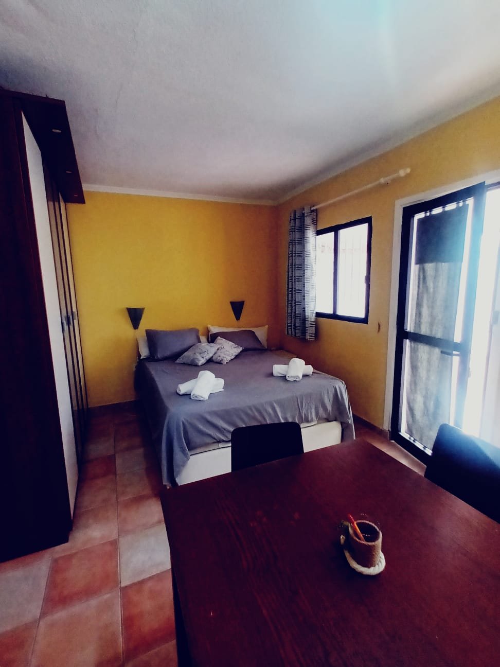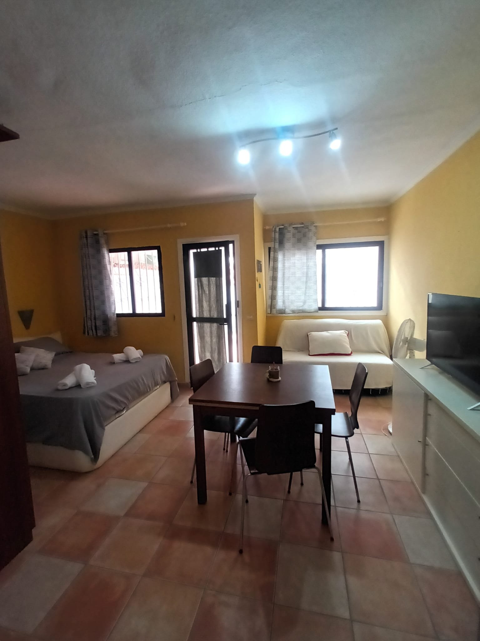 Amplio estudio situado en el encantador complejo Santa Marta con piscina comunitaria, tumbonas y sombrillas disponibles. Este acogedor y luminoso apartamento cuenta con una terraza de 20 m² con barbacoa y tumbonas. El apartamento, recién renovado, dispone de una cómoda cama doble, un amplio armario, un sofá cama y una cocina equipada. Cuenta con un cuarto de baño con ducha. Situado en el centro de Costa del Silencio, con todos los servicios a pocos pasos: supermercados, farmacias, restaurantes. A pocos pasos de la encantadora montaña Amarilla y de la playa de Las Galletas. Parada de autobús en la calle principal. Aparcamiento interior disponible bajo petición.